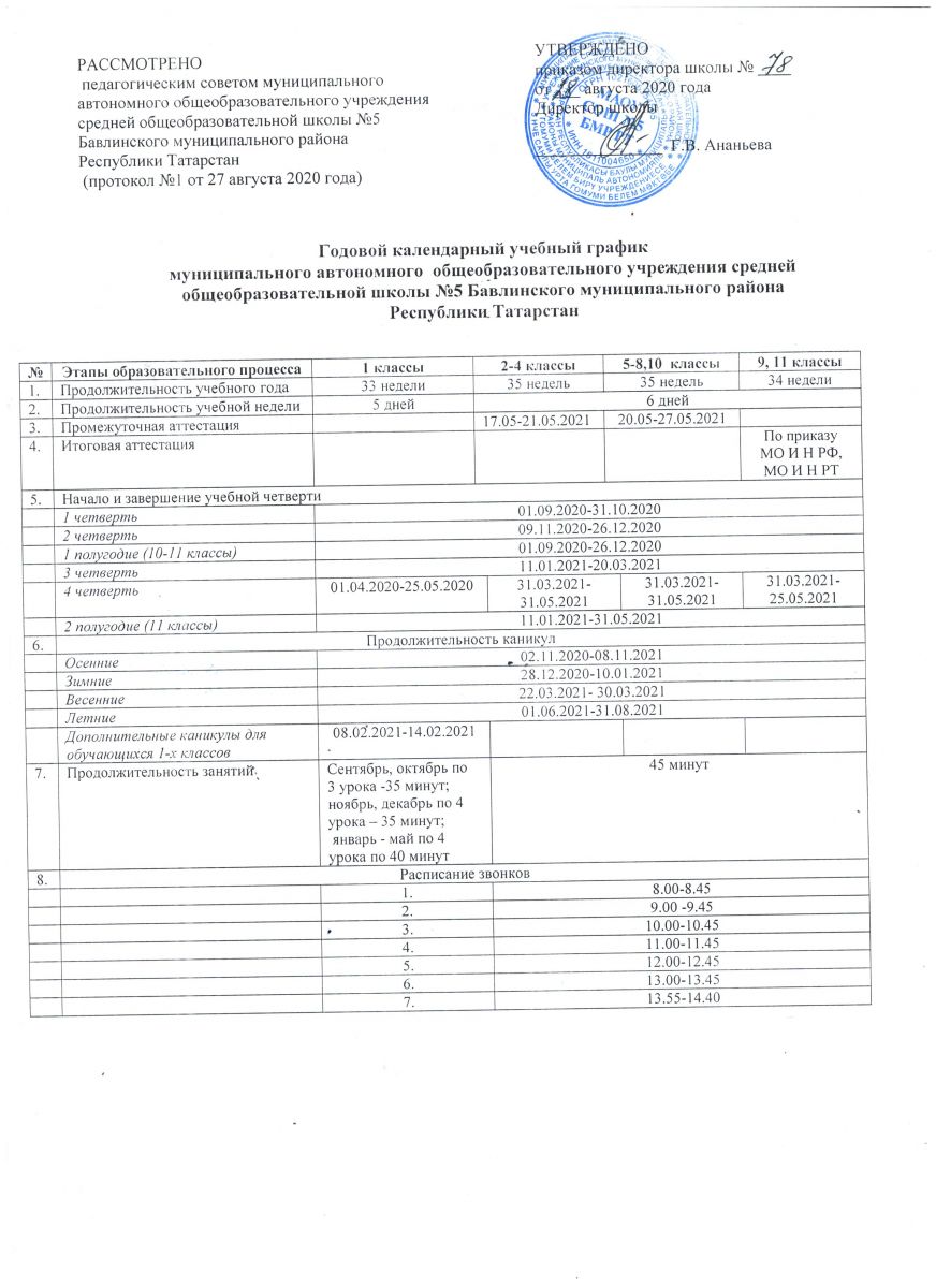 Годовой календарный учебный график 2020-2021 уч год / 2020-2021 нче уку елына еллык календарь уку графигы