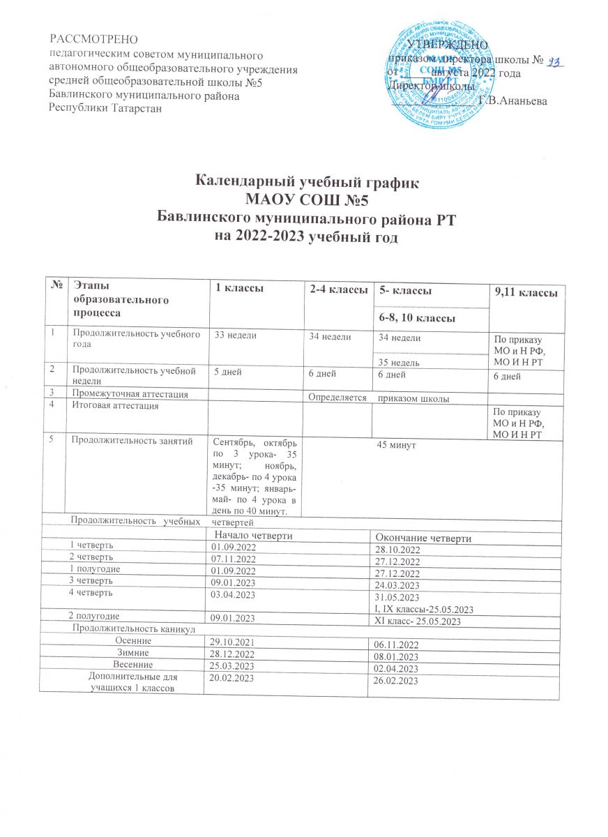 Годовой учебный график 2022-2023 учебный год / 2022-2023 нче уку елына еллык календарь уку графигы