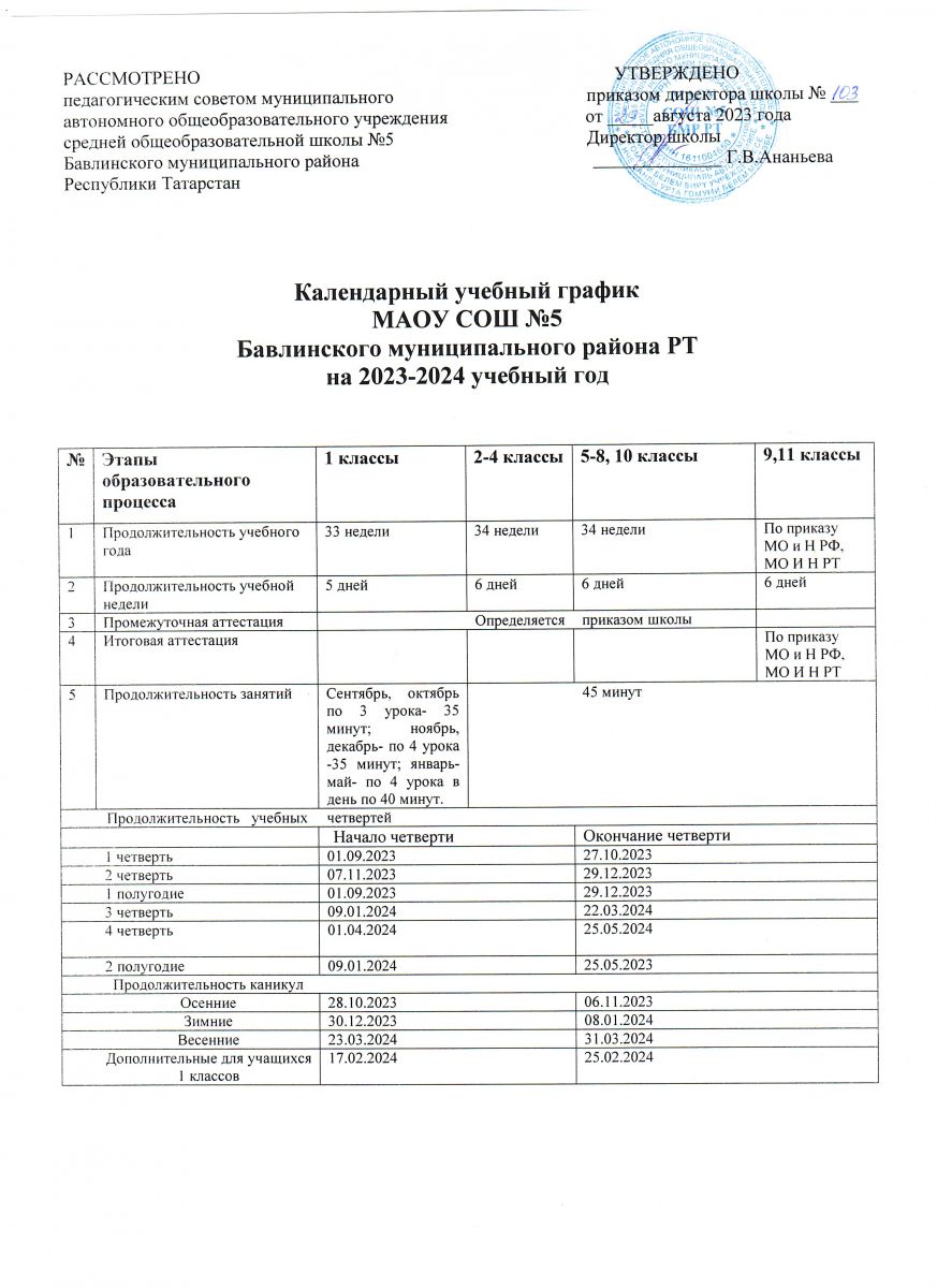 Годовой учебный график 2023-2024 учебный год / 2023-2024 нче уку елына еллык календарь уку графигы