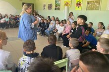 Балалар алдында Баулы районында БДД ДБУ профилактика бүлеге начальнигы Игнатьева Р. И. чыгыш ясады.