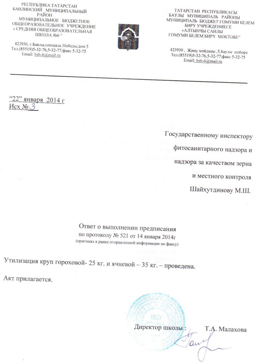 | Короткое название: | МБОУ "СОШ№6"Бавлинского муниципального района РТ |