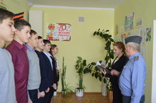 В краеведческом уголке школы педагог-организатор ОБЖ, заместитель директора по воспитательной работе, социальный педагог приняли в ряды движения Юнармия ребят, которые изъявили желание работать в данном направлении. Ребята произнести торжественную клятву юноармейца.
