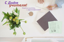 Дорогие учителя! От всей души поздравляем вас с Днём учителя. В этот день мы хотим поблагодарить вас за ваш ежедневный труд, вашу ежеминутную работу. В ваших руках — образование детей, которое станет залогом будущего всей страны. Спасибо вам за время и силы, которые вы отдаёте своим ученикам.