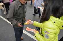 Учащиеся 10 класса в качестве волонтеров раздавали поздравительные открытки в честь празднования Дня пожилых людей.
