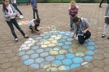 Ребята рисовали на асфальте коллаж "Наша планета глазами детей". Затем был объявлен "Час ГТО". Все ребята сдавали один из нормативов ГТО - прыжки в длину с места. По результатам второго дня сдачи ГТО, лидирует 2 отряд.