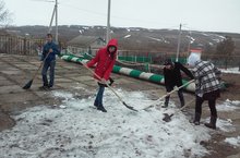 Язгы шәфкатьлелек атнасы кысаларында мәктәп территориясендә кар тарату буенча өмә оештырылды. -