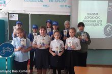 ЮИД мәктәп отряды әгъзалары 5-7 сыйныф укучылары белән "Велосипедчы өчен юл хәрәкәте кагыйдәләре" темасына әңгәмә оештырды һәм белешмәлекләр өләште.