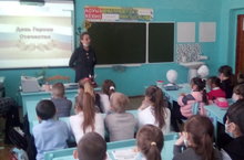Учитель начальных классов Сидикова Р.С. для учащихся 1-4 классов провела классный час, посвящённый Дню героев Отечества. Цель мероприятия: воспитание чувство гордости за историю своей страны, уважения к людям, совершивших героический поступок.