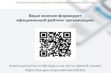 QR-код дает возможность открыть страницу организации на сайте bus.gov.ru либо в мобильном приложения «Наше мнение» (на выбор пользователя) и получить возможность: оценить качество условий осуществления образовательной деятельности организацией и оставить отзыв; ознакомиться с планом по устранению недостатков в организации по результатам проведенной независимой оценки (функционал будет реализован в течение 2024 г.); оставить отметку о согласии или несогласии с результатами независимой оценки.