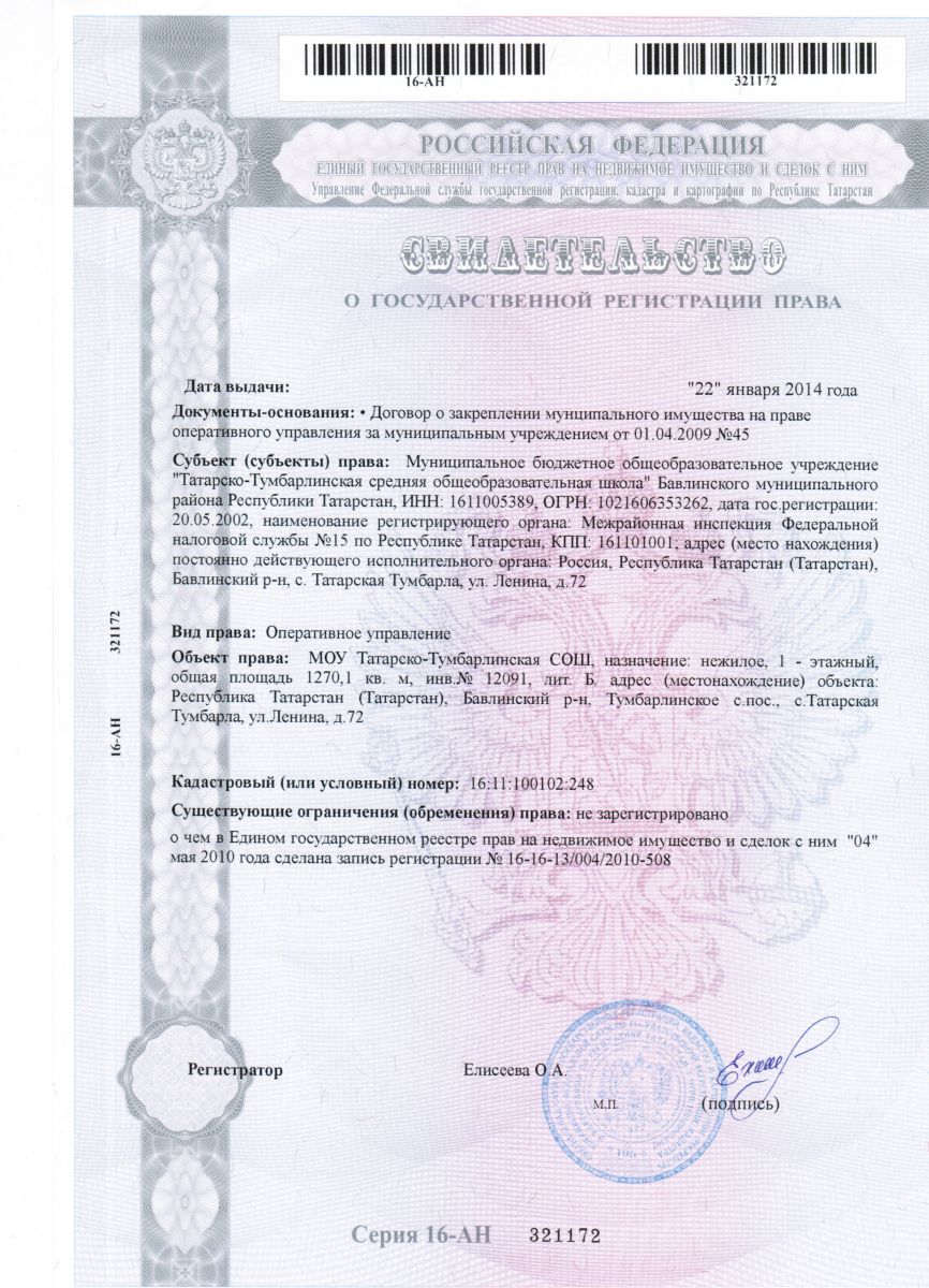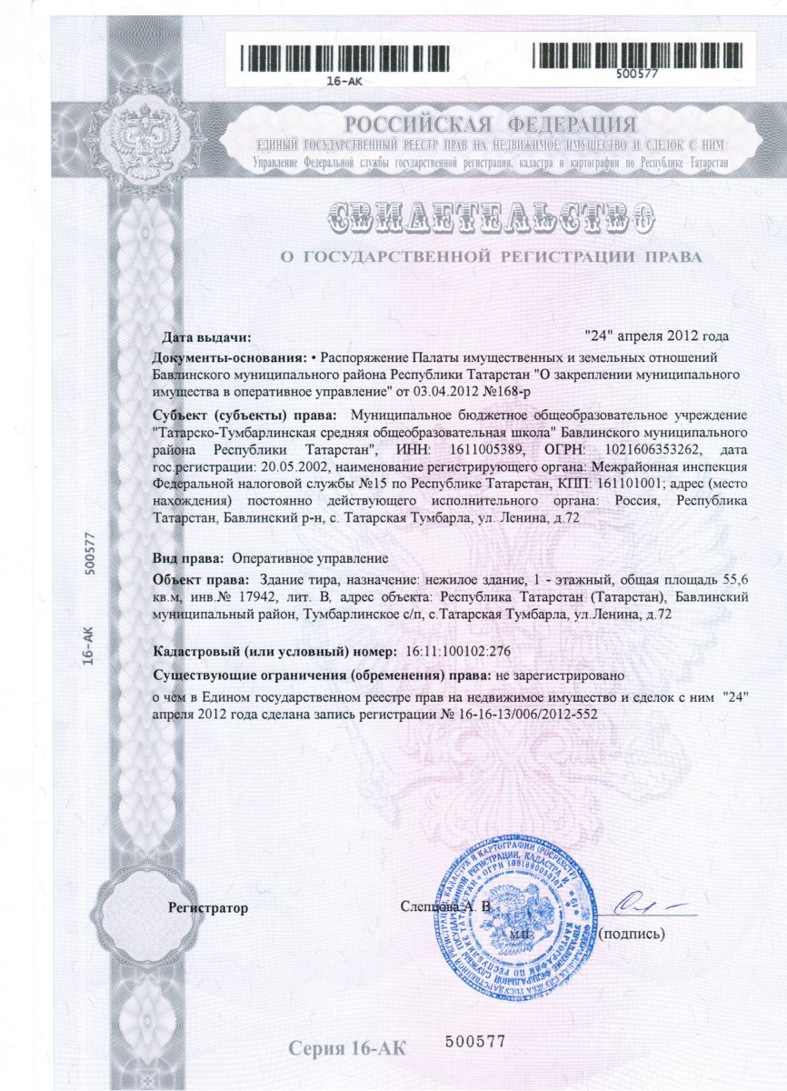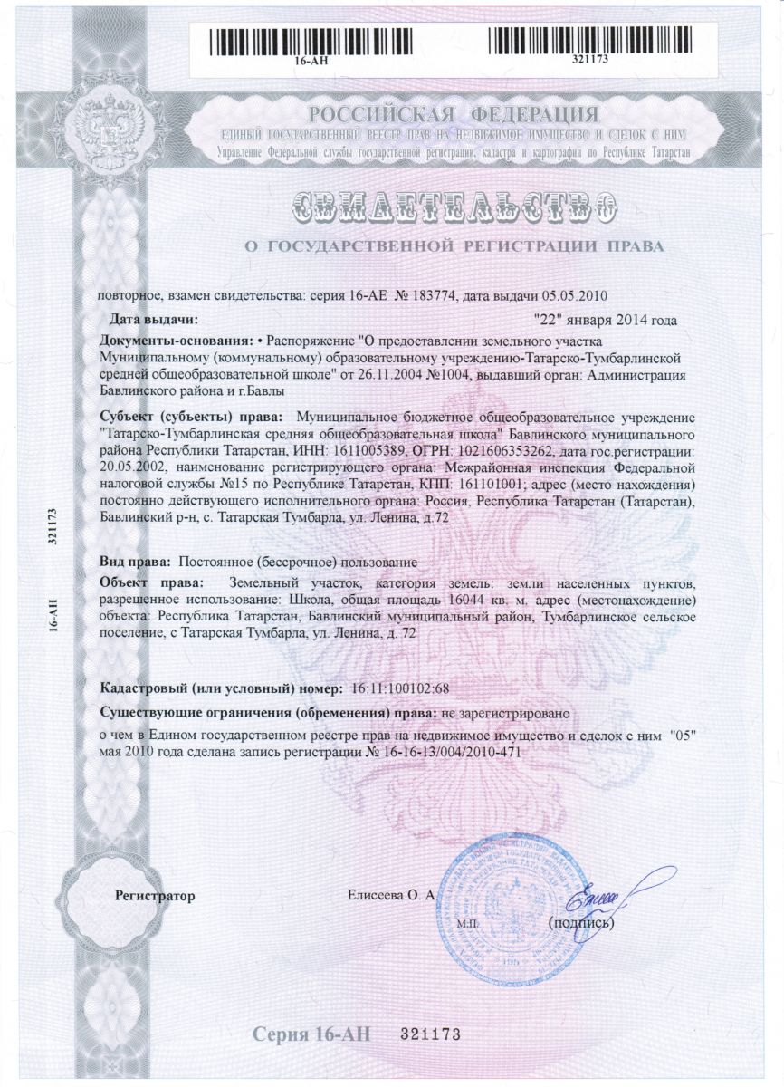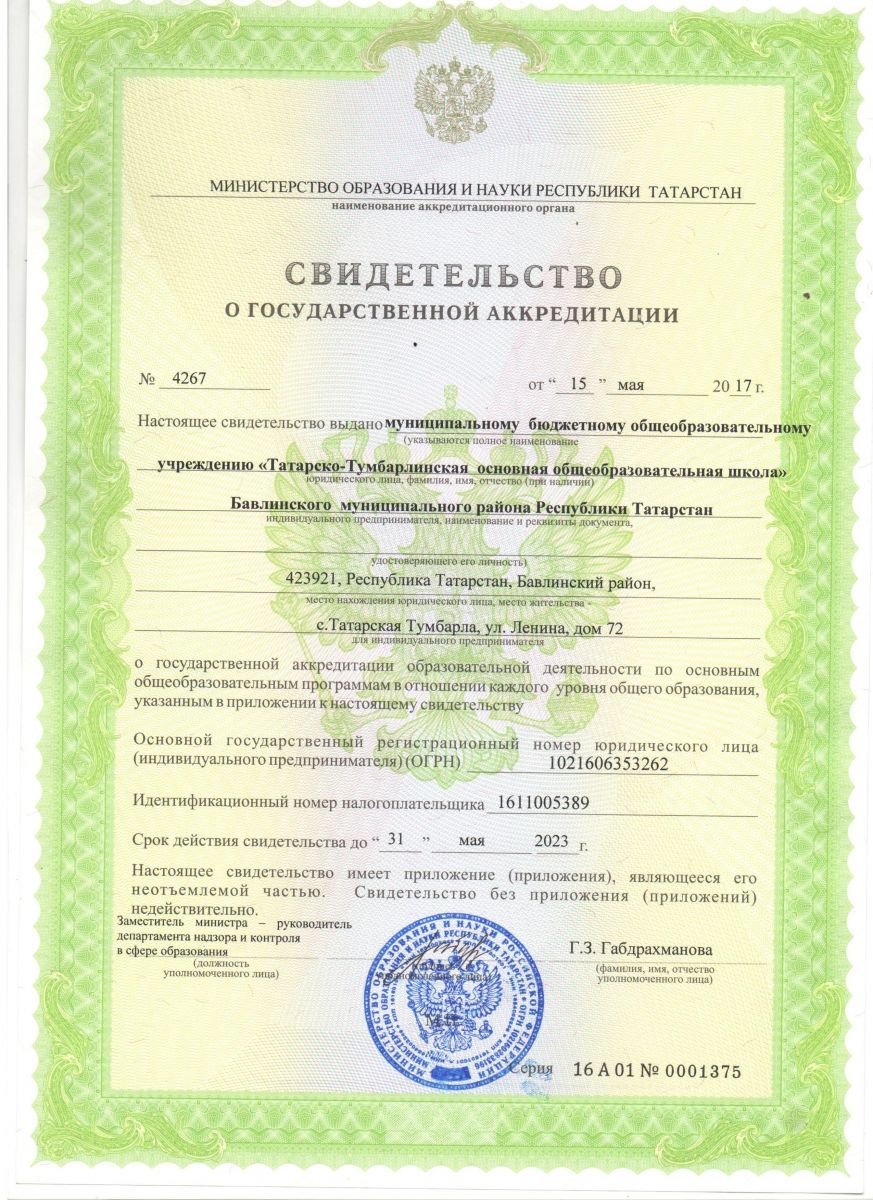 | Адрес: | 423921, Республика Татарстан, с. Татарская Тумбарла, ул. Ленина, д. 72 |