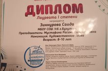 15 Декабря Дом Техники гостеприимно принял Международный многожанровый детский, взрослый профессиональный конкурс – фестиваль Российский звездопад проекта «Музыкальный Звездный Олимп». В этом конкурсе – фестивале приняла участие ученица педагога до Мустафиной Р.Г. в номинации: Художественное слово – Зиннурова Саида. Она так эмоционально, проникновенно и в то же время естественно, прочитала стихотворение «Ах, война…». Компетентное жюри в составе Татьяны Лариной –актрисы театра и кино, солистки оперетты, Марио Франсиско (Куба), выпускник МГИМО, ГИТИС, хореограф, единодушно присудили ей 1 место в номинации « Художественное слово».