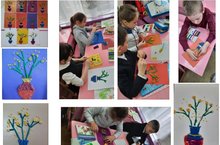 Дошколоьники вместе с Юлей Юрьевной создали подснежники из ватных дисков.