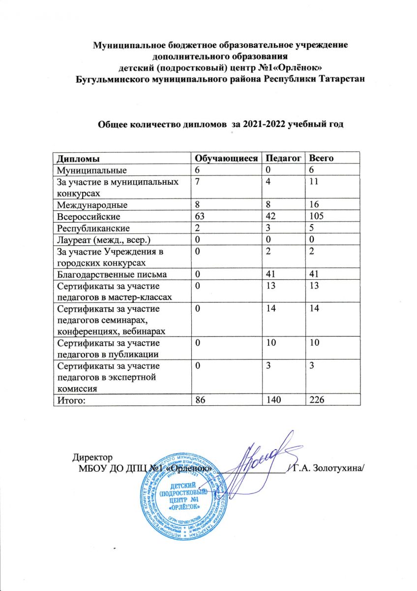 Общее количество дипломов обучающихся и педагогов за 2021-2022 уч.г.