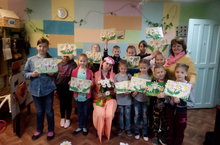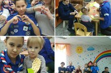 Педагог театральной студии провела с ребятами мастер-класс по изготовлению декоративного панно к настольному театру.
