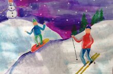 Возможность изобразить в рисунках свои активные каникулы позволяет детям заново почувствовать эмоции радости от зимних забав.