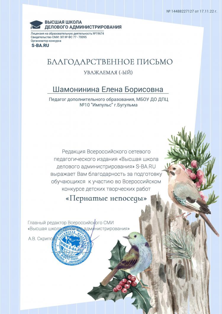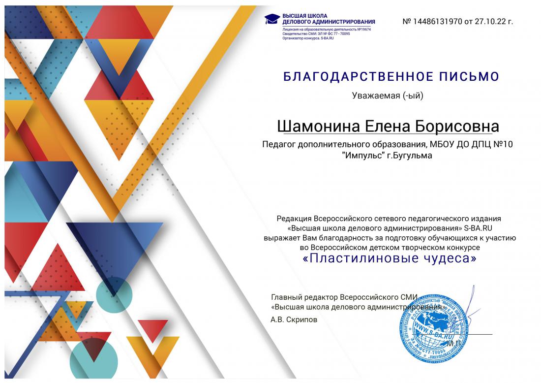 1 Благодарственное письмо от редакции всероссийского сетевого педагогического издания «Высшая школа делового администрирования»Благодарность.jpg