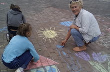 Весело прошел праздник "До свиданья, лето!".Дети с удовольствием рисовали мелом на асфальте летний пейзаж.