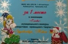 Мы поздравляем Чурикову Марию за первое место в конкурсе "Здравствуй Новый год", номинация "Ёлочка" и желаем ей дальнейших успехов в творчестве.