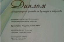 Мы поздравляем педагога Ермолаеву Л.А. с награждением дипломом Международного фестиваля культуры и творчества.
