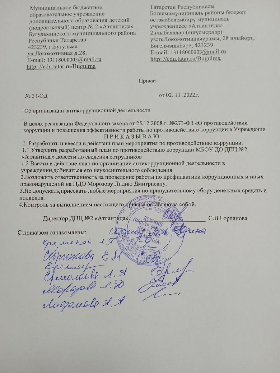 Муниципальное бюджетное образовательное учреждение дополнительного образования детский (подростковый) центр №2 «Атлантида» Бугульминского муниципального района РТ»