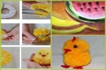 Ребята из студии "Город мастеров" на этой неделе делали цыпленка из ниток и рисовали красками фрукты.