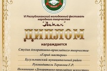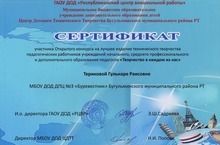 Поздравляем педагога Терикову Гульнару Раисовну участника открытого конкурса на лучшее изделие технического творчества «Творчество в каждом из нас».