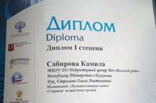 Поздравляем Сабирову Камилу занявшую 1 место ,на республиканском конкурсе "Роза Ветров", педагог Гаврилова О.А. 30.03.2019
