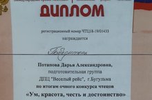 Поздравляем!!! Потапову Дарью,Победитель. По итогам очного конкурса чтецов "Ум красота,честь и достоинство" в рамках международного проекта "Сомик" педагог Гаврилова О.А. 01.04.2019