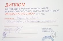 Поздравляем Федотову Алину за победу в региональном конкурсе юных чтецов "ЖИВАЯ КЛАССИКА" в номинации "Личностное отношение" педагог Гаврилова О.А. 05.04.2019