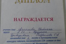 Поздравляем Аглямову Светлану, занявшую 1 место! Выражаем огромную благодарность за подготовку к конкурсу педагогу студии художественного слова "Любители словесности" Гавриловой Ольге Анатольевне.