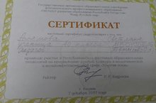 Аглямова Светлана, ученица 10 класса МБОУСОШ № 16, обучающаяся в студии художественного слова "Любители словесности" , педагого Гаврилова О.А.,приняла участие в Республиканском фестивале образовательных технологий по продвижению русской культуры в полиэтнической среде "Золотая осень", проведенном в Институте развития образования Республики Татарстан ( г. Казань), и получила Сертификат. Поздравляем!