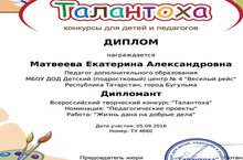 Всероссийский творческий конкурс "Талантоха" - дипломант Матвеева Екатерина Александровна 12.09.2016