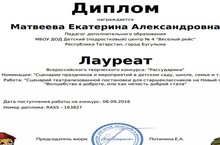 ЛАУРЕАТ Всероссийского творческого конкурса "Рассударики" - педагог дополнительного образования Матвеева Екатерина Александровна 12.09.2016