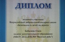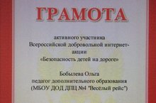 Благодарим Бобылеву Ольгу Павловну за активное участие во Всероссийской добровольной интернет-акции "Безопасность детей на дороге"