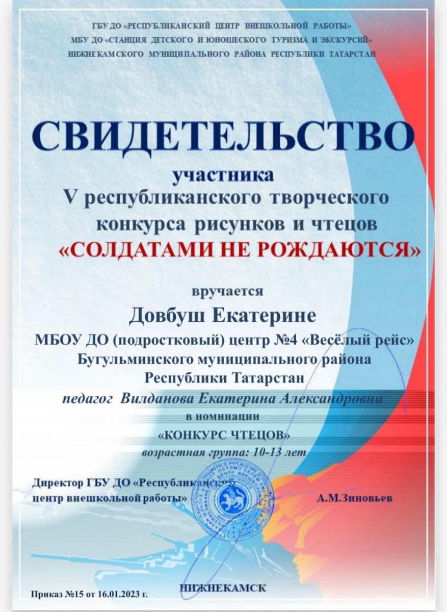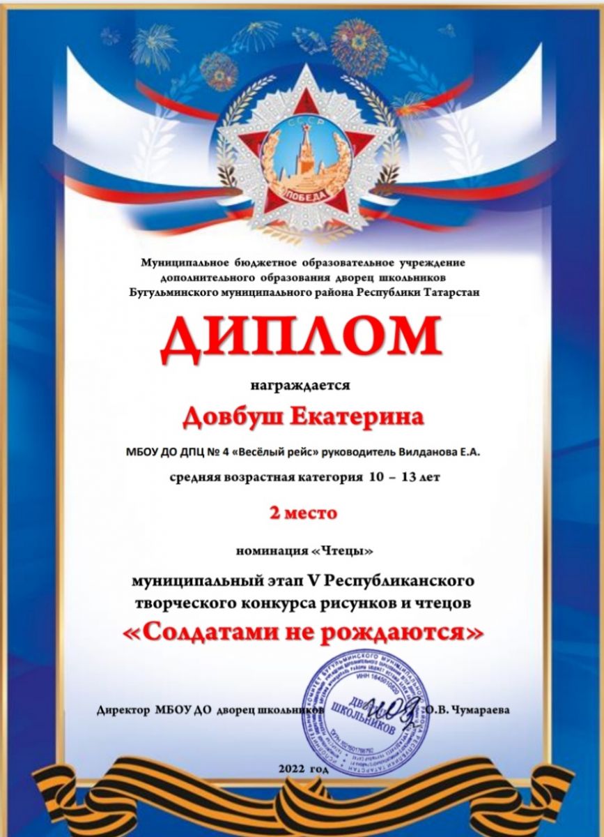 10. Муниципальный этап V Республиканского творческого конкурса рисунков и чтецов "Солдатами не рождаются" Довбуш Екатерина Диплом 2 место jpg