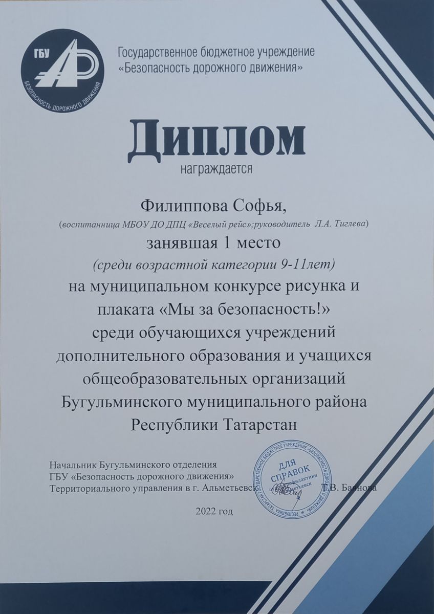 48.Муниципальный конкурс оисунка и плаката "Мы -за безопасность" 1 место Диплом