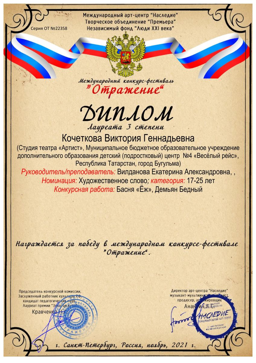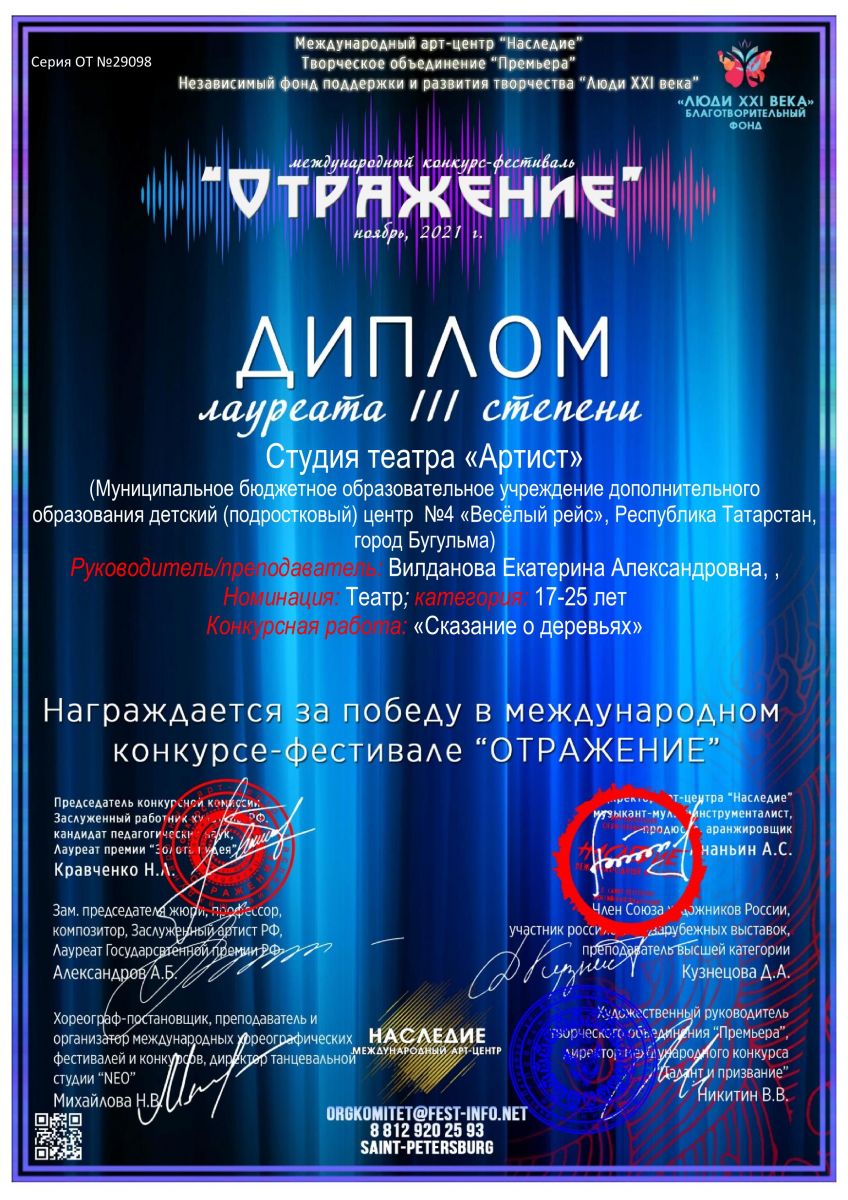21.Международный конкурс-фестиваль "Отражение" лауреат 3 степени Диплом