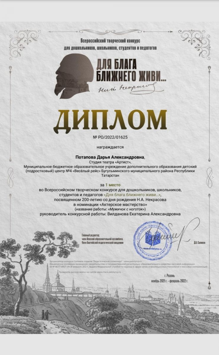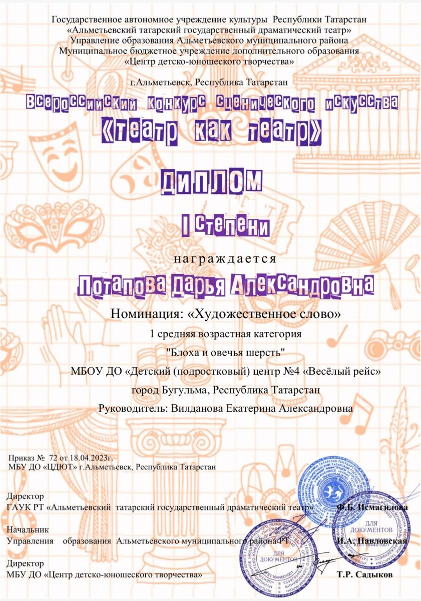 28. Всероссийский конкурс сценического искусства "Театр как театр" Потапова Дарья Диплом 1 степени.jpg