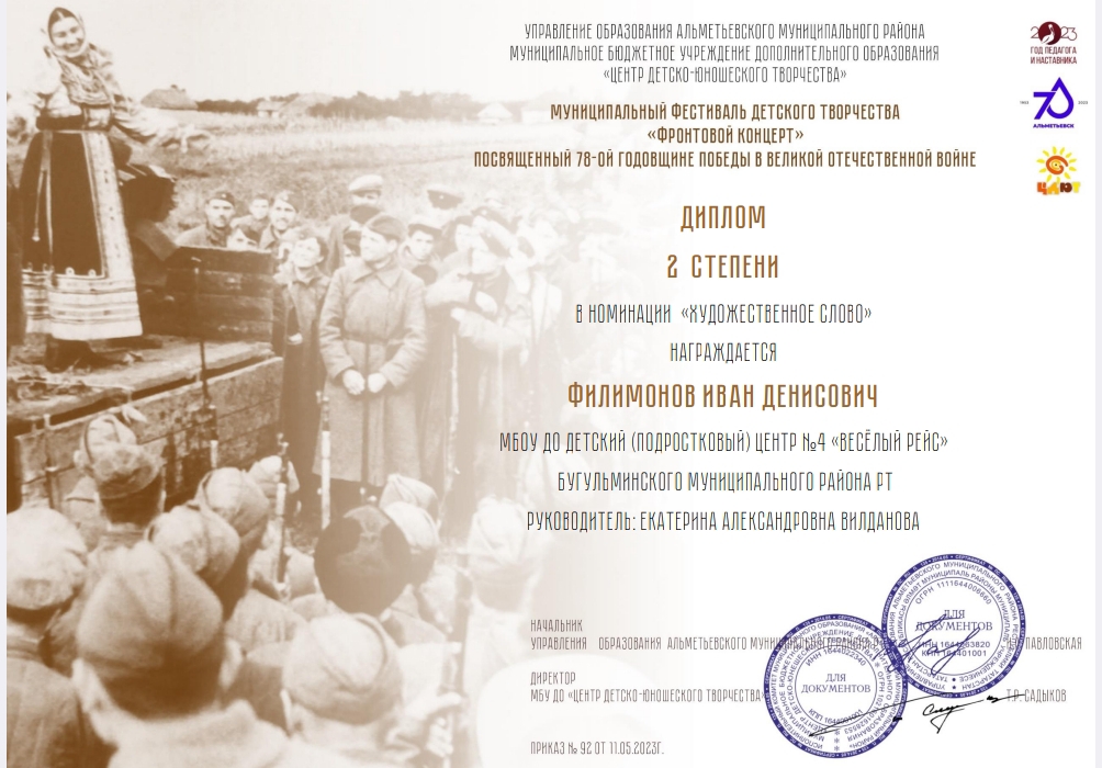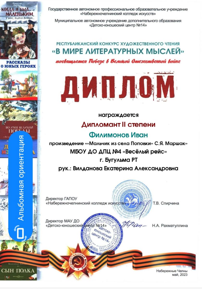 32. Муниципальный фестиваль детского творчества "Фронтовой концерт" город Альметьевск Филимонов Иван Диплом 2 степени.jpg