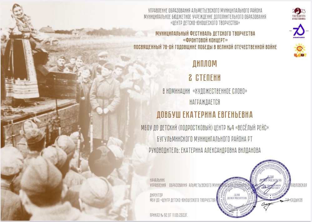 31. Муниципальный фестиваль детского творчества "Фронтовой концерт" город Альметьевск,Довбуш Екатерина Диплом 2 степени.jpg