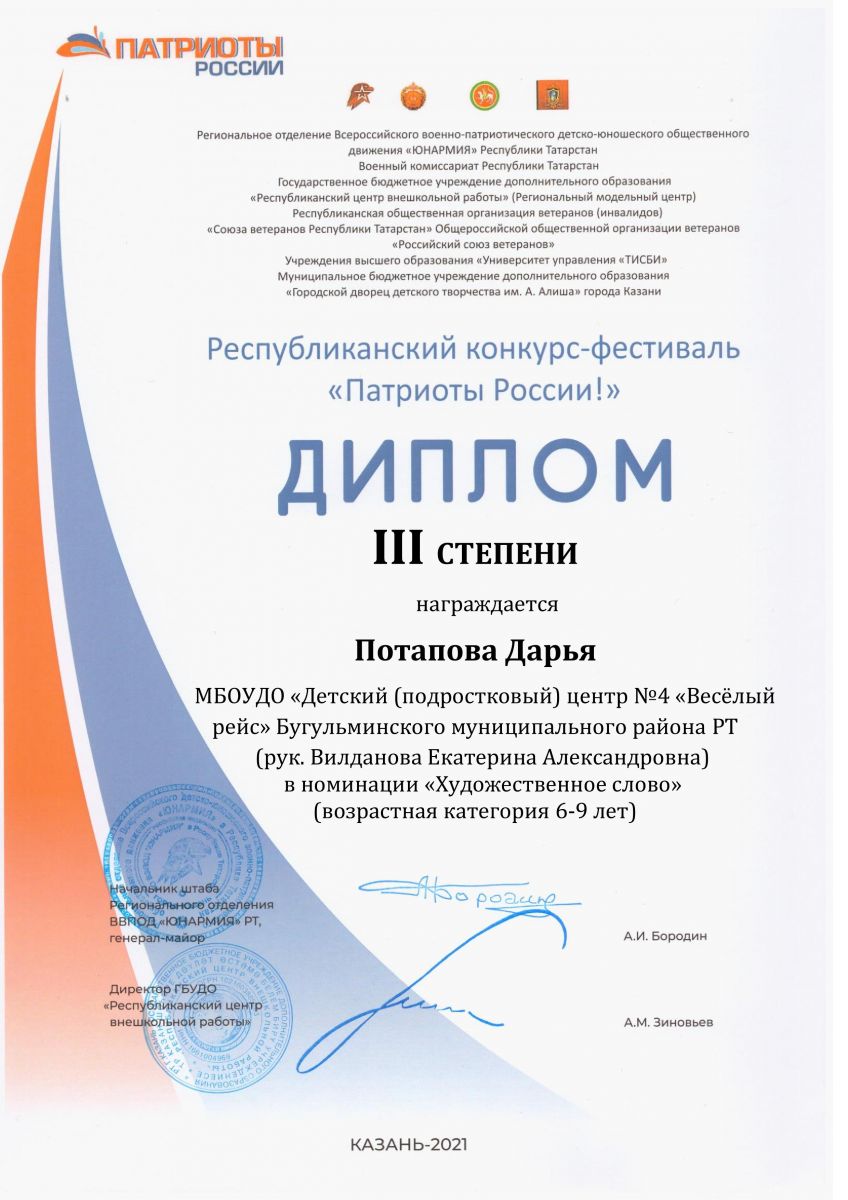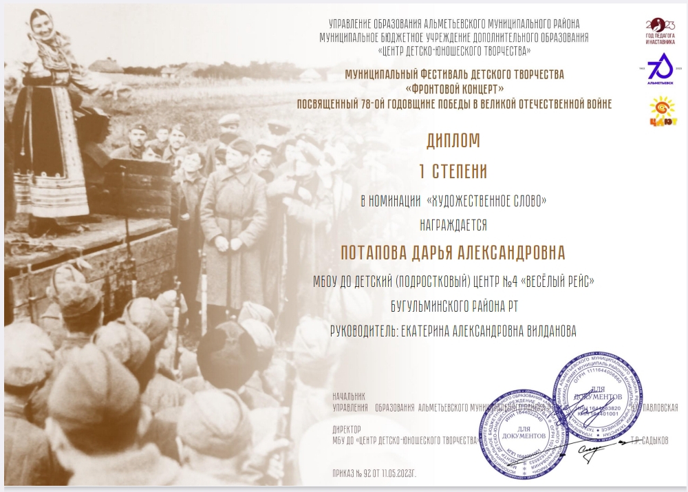 33. Муниципалный фестиваль детского творчества "Фронтовой концерт" город Альметьевск Потапова Дарья Диплом 1 степени.jpg
