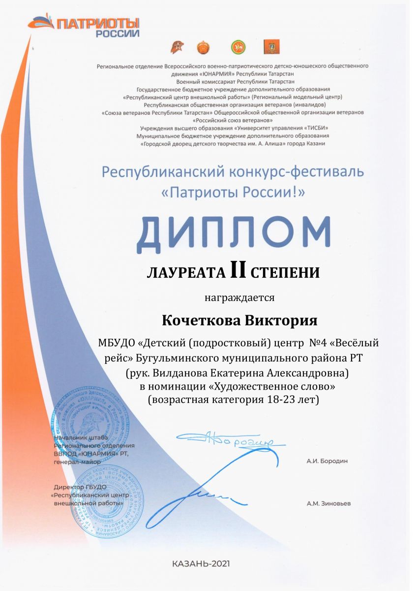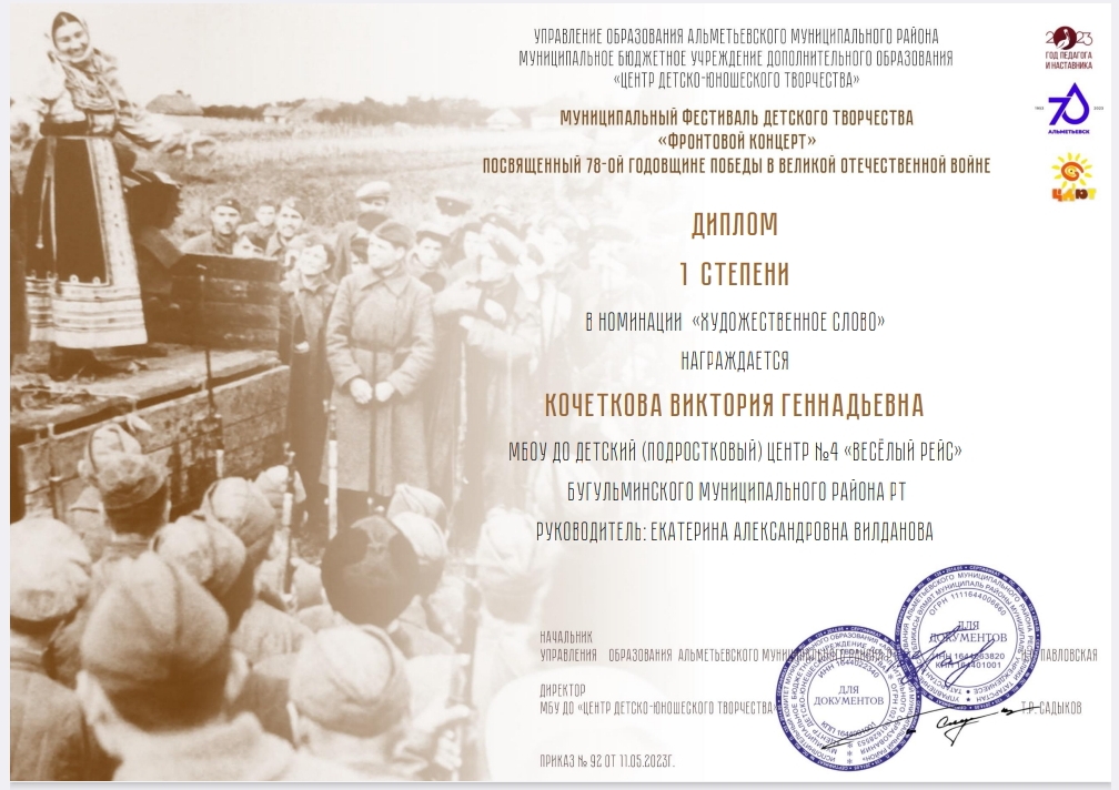 34. Муниципальный фестиваль детского творчества "Фронтовой концерт" город Альметьевск Кочеткова Виктория Диплом 1 степени.jpg
