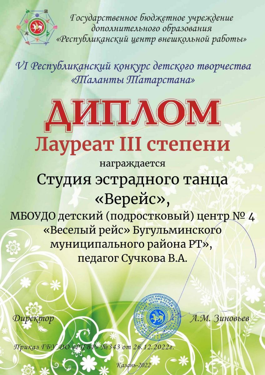 8. Республиканский конкрс "Таланты Татарстана" Лауреат 3 степени" Верейс 4 Республиканский конкурс Таланты Татарстана.jpg