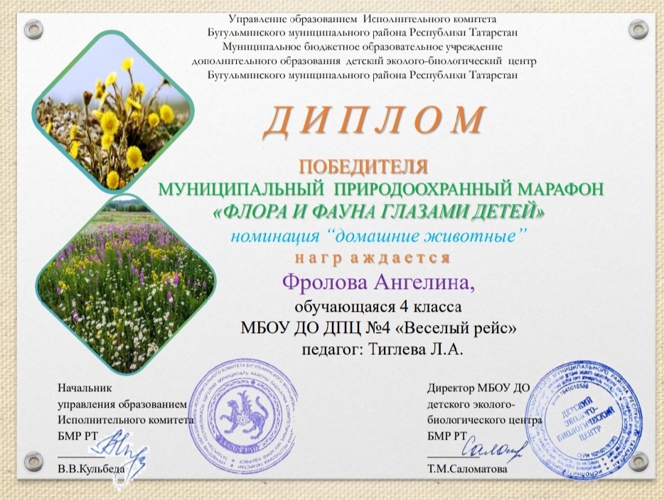 39. Муниципальный природоохранный марафон "Флора и фауна глазами детей" Диплом победителя Фролова Ангелина ИЗОбраз.jpg