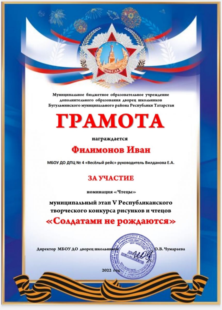 9. Муниципальный этап V Республиканского творческого конкурса рисунков и чтецов "Солдатами не рождаются" Филимонов Иван Грамота за участие Солдатами не рождаются jpg