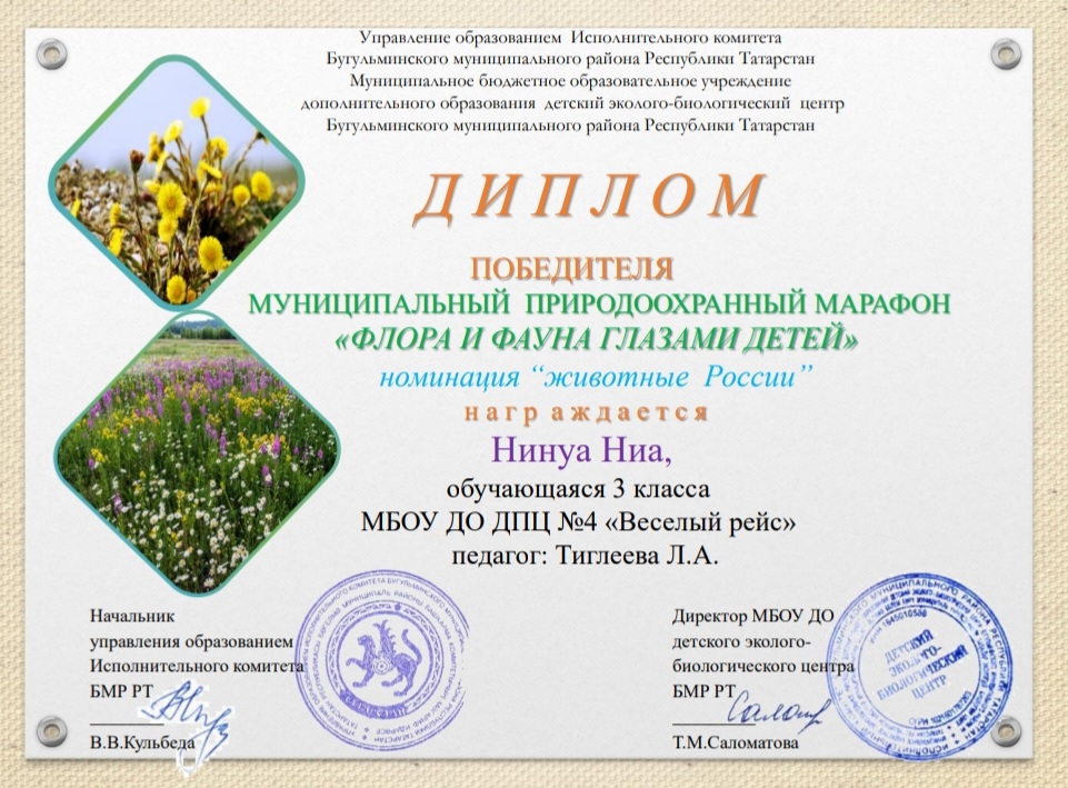 40. Муниципальный природоохранный марафон "Флора и фауна глазами детей" Диплом победителя Нинуа Ниа ИЗОбраз.jpg