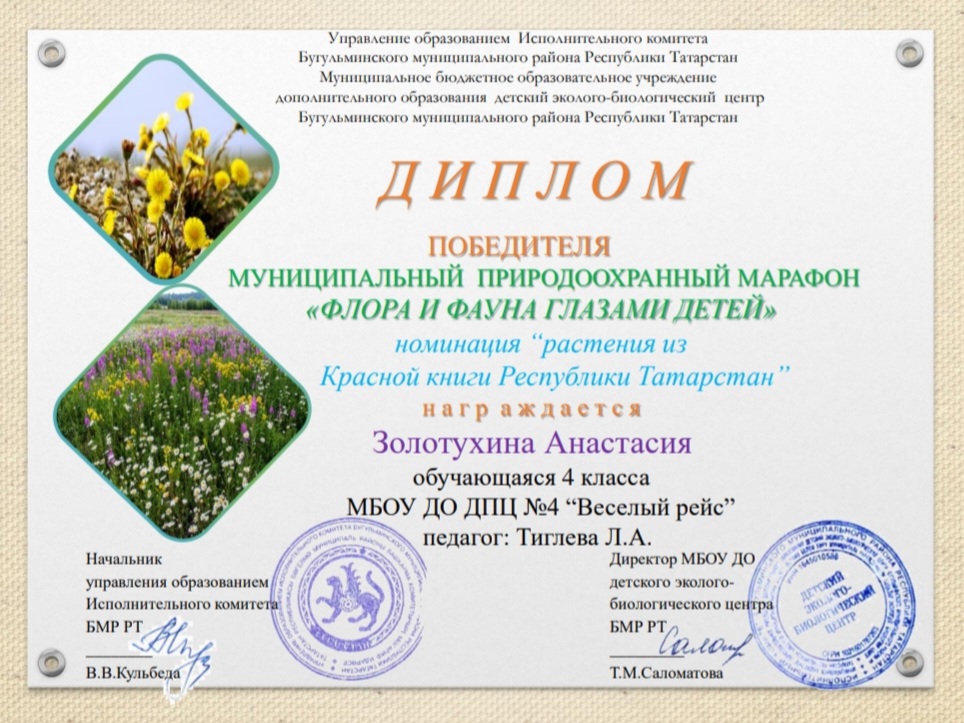 44. Муниципальный природоохранный марафон "Флора и фауна глазами детей" Диплом победителя Золотухина Анастасия ИЗОбраз.jpg