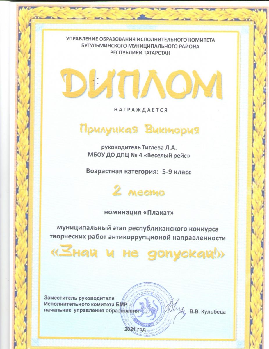 14.Муниципальный этап республиканского конкурса творческих работ антикоррупционной направленности 2 местоДиплом