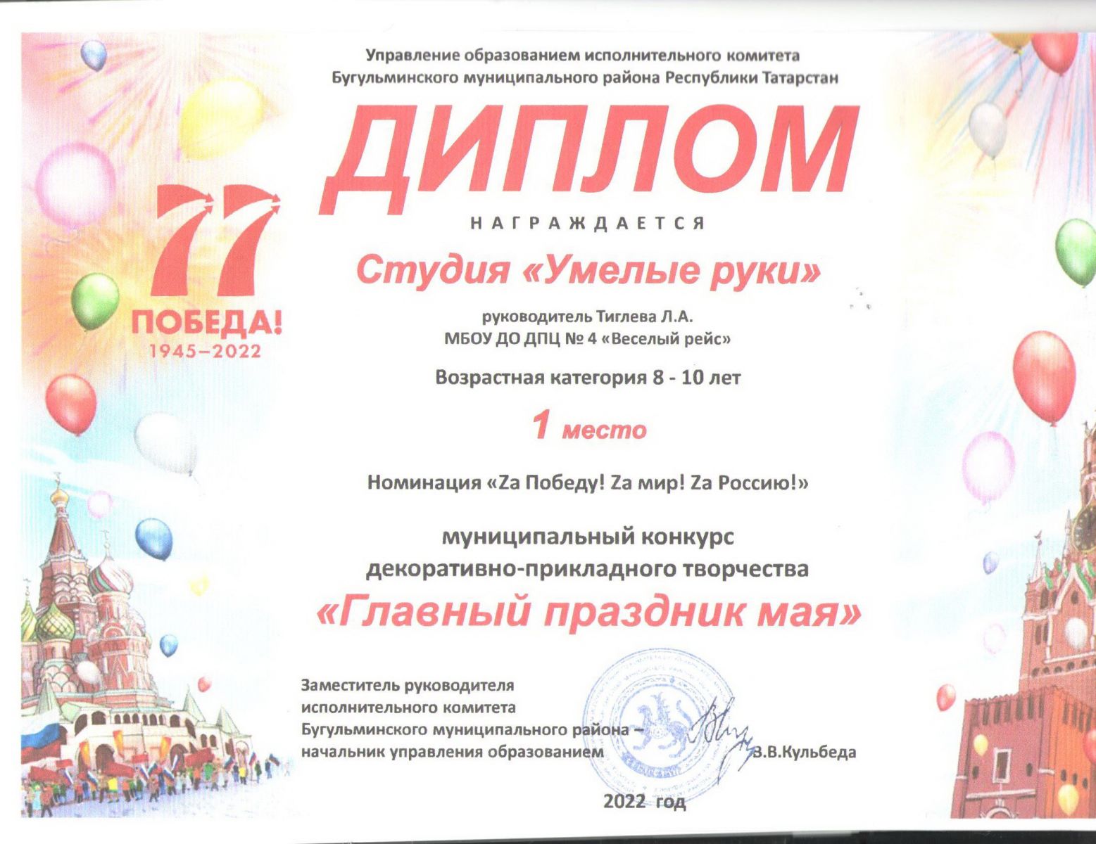 42.Муниципальный конкурс "Главный праздник мая" 1 место Диплом