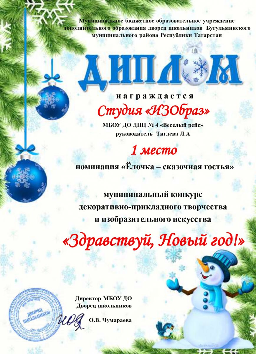 11.Муниципальный конкурс декоративно-прикладного творчества и изобразительного искусства "Здравствуй новый год! 1 местоДиплом